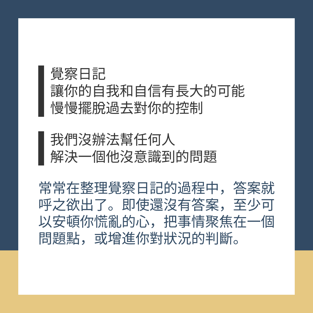 做覺察日記的同時,也可以看到孩子真正的需求,而不是「你覺得的孩子的需求」