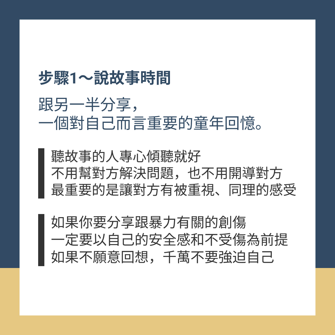 跟另一半分享,一個對自己而言重要的童年回憶。