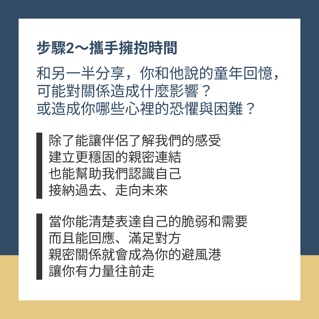 - 這樣做,除了能讓伴侶了解我們的感受,建立更穩固的親密連結,也能幫助我們認識自己,接納過去、走向未來