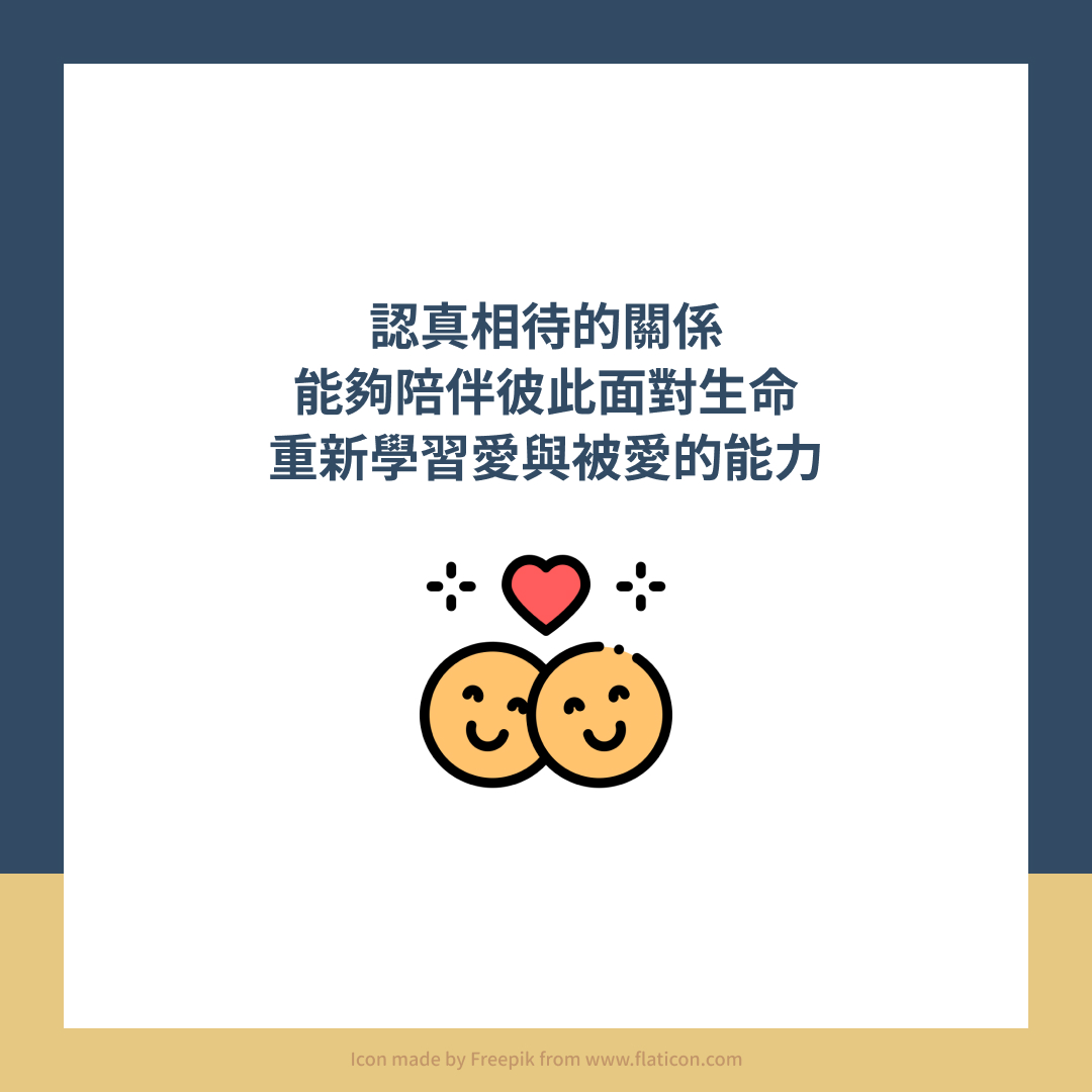 認真相待的關係,能夠陪伴彼此面對生命,重新學習愛與被愛的能力。