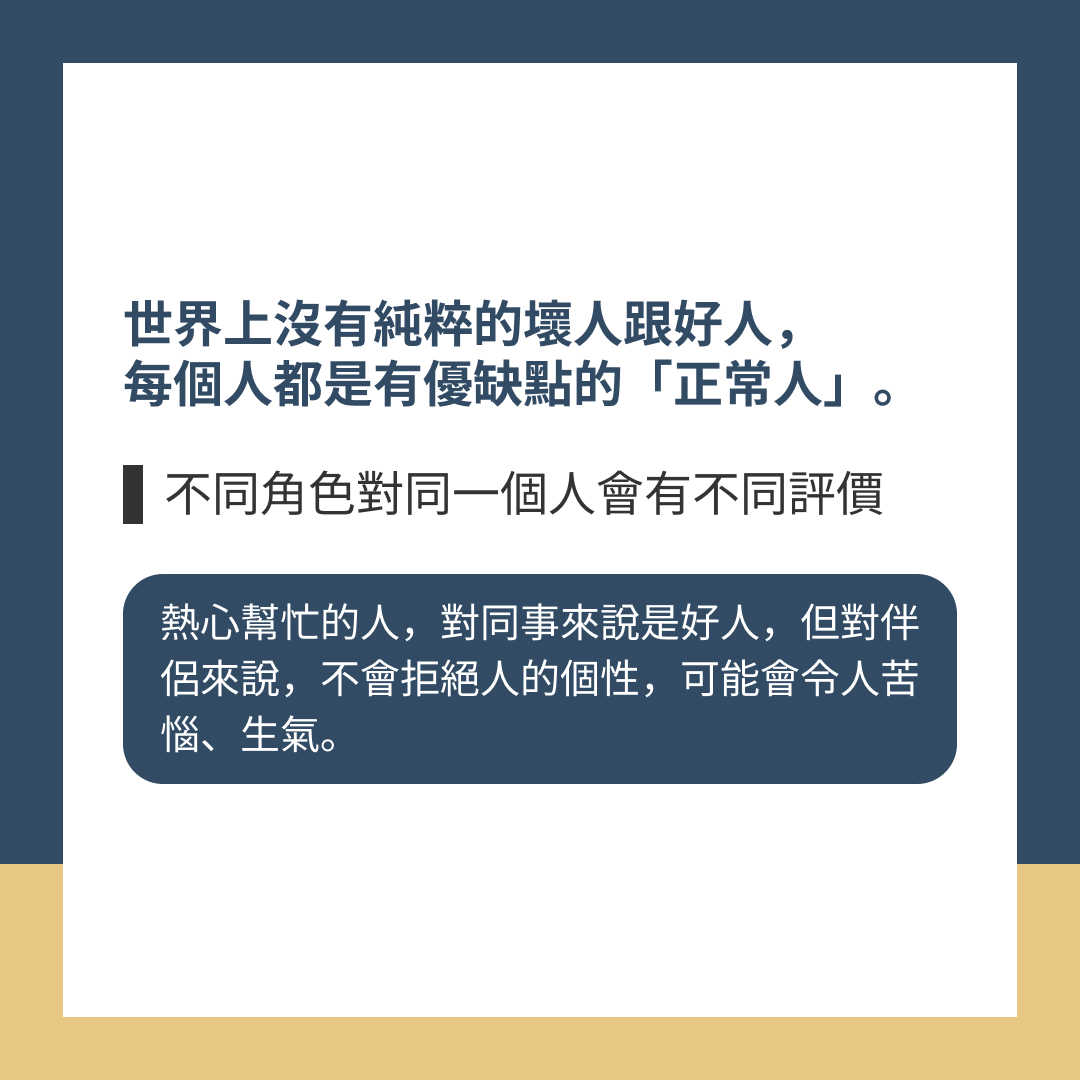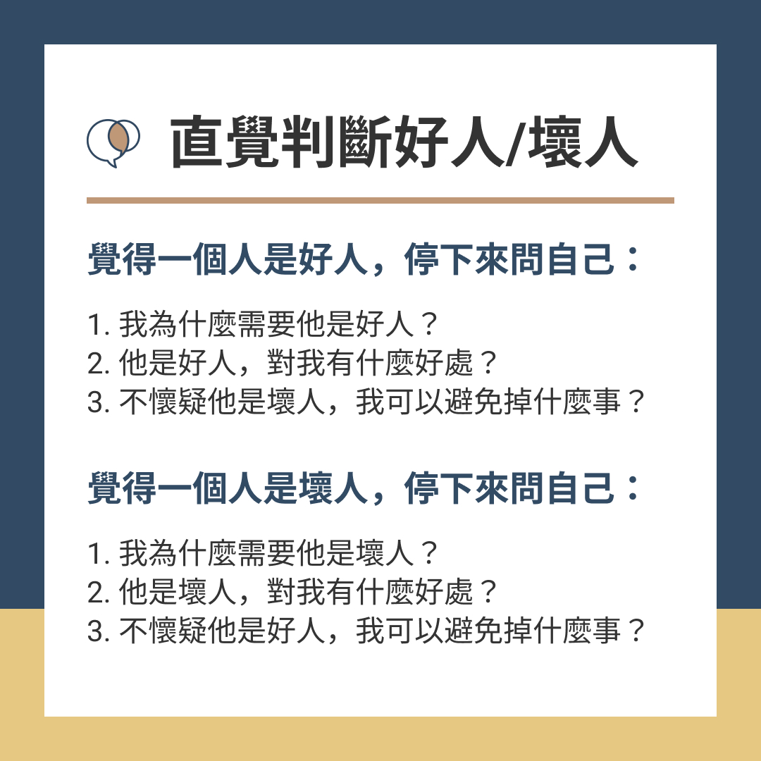對人有好、壞的預設是正常的,但是需要透過事情來檢核你的預設