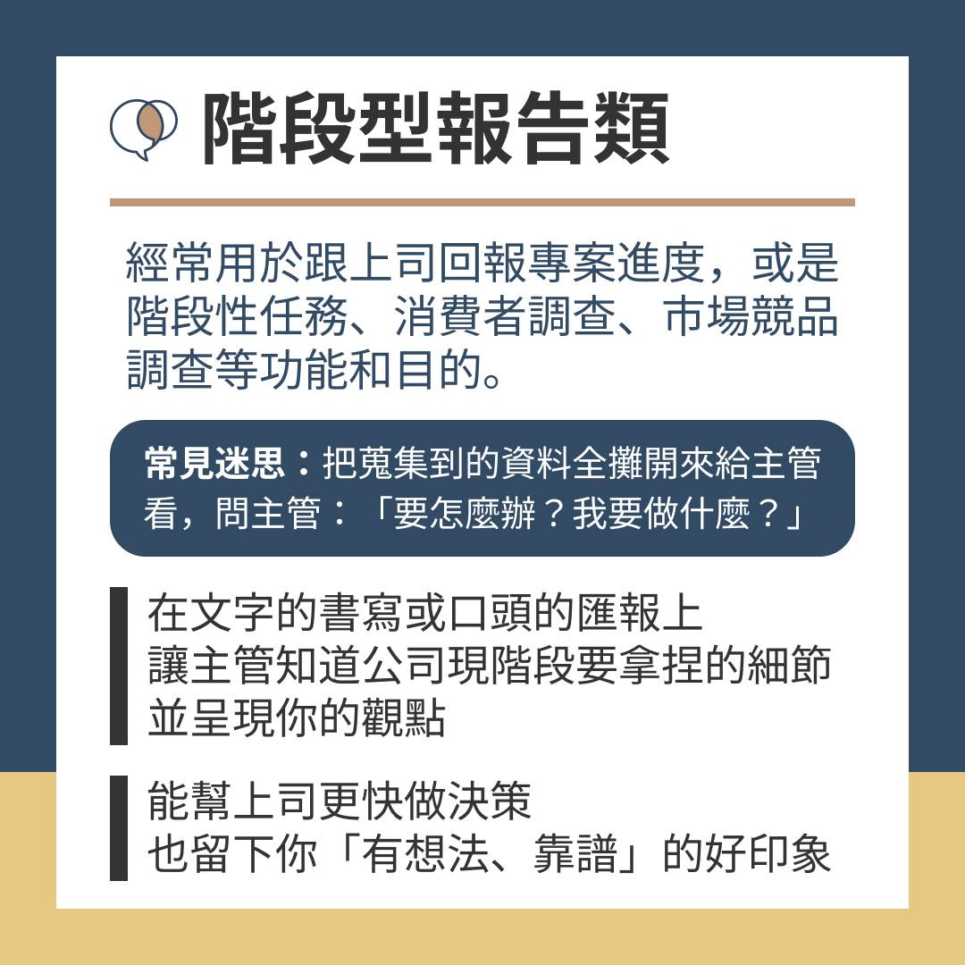 經常用於跟上司回報專案進度,或是階段性任務、消費者調查、市場競品調查等功能和目的