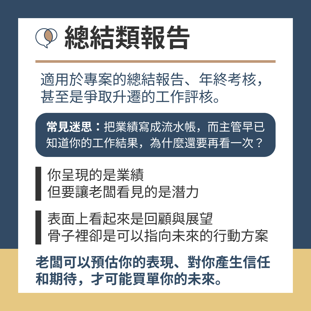 總結類的匯報,表面上看起來是回顧與展望,骨子裡卻是可以指向未來的行動方案