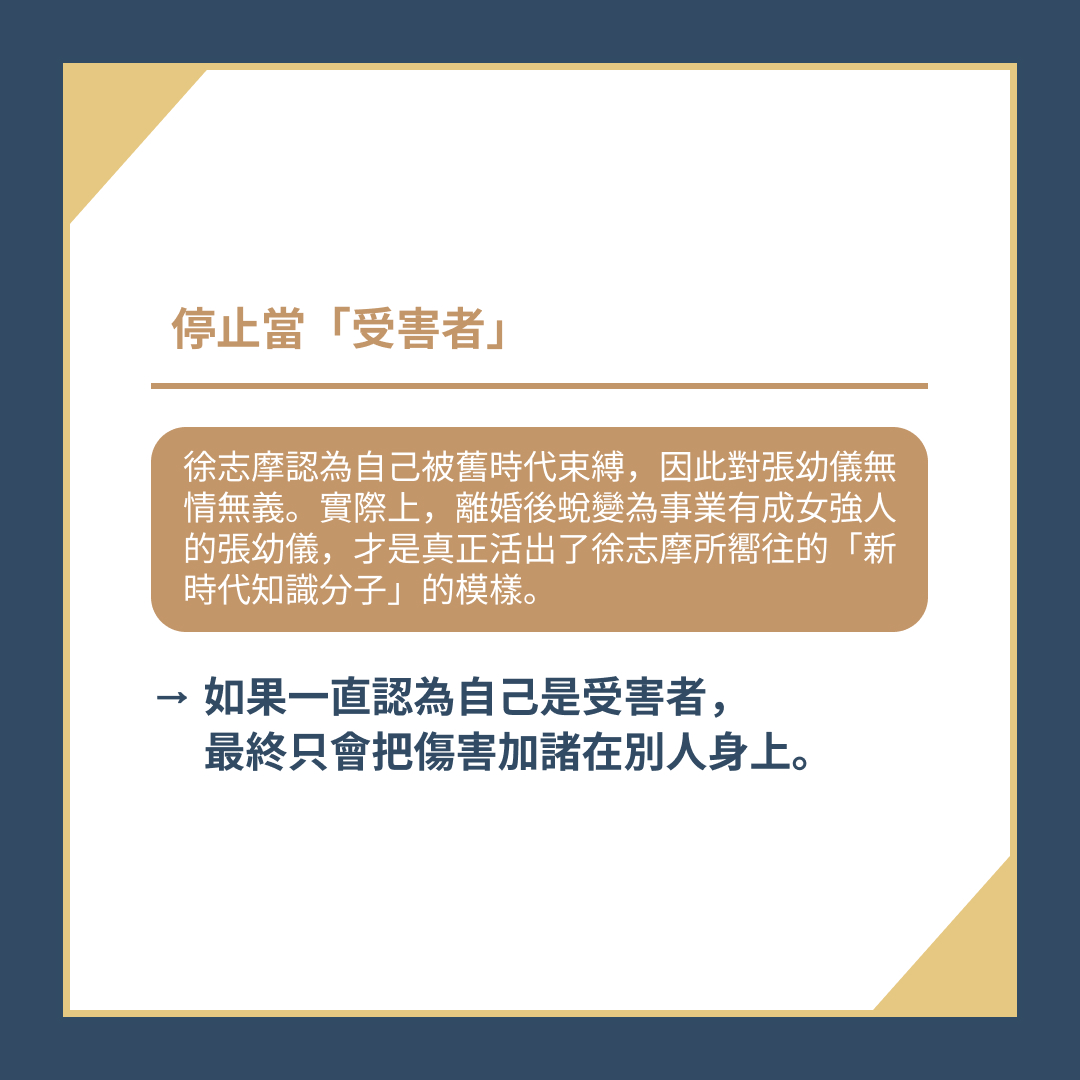 徐志摩將一切的錯,推到舊時代的價值觀上,卻不曾反思自己的行為。