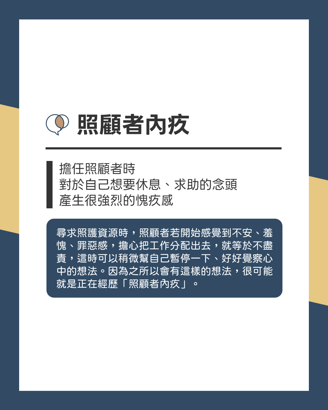 擔任照顧者時,對於自己想要休息、求助的念頭,產生很強烈的愧疚感