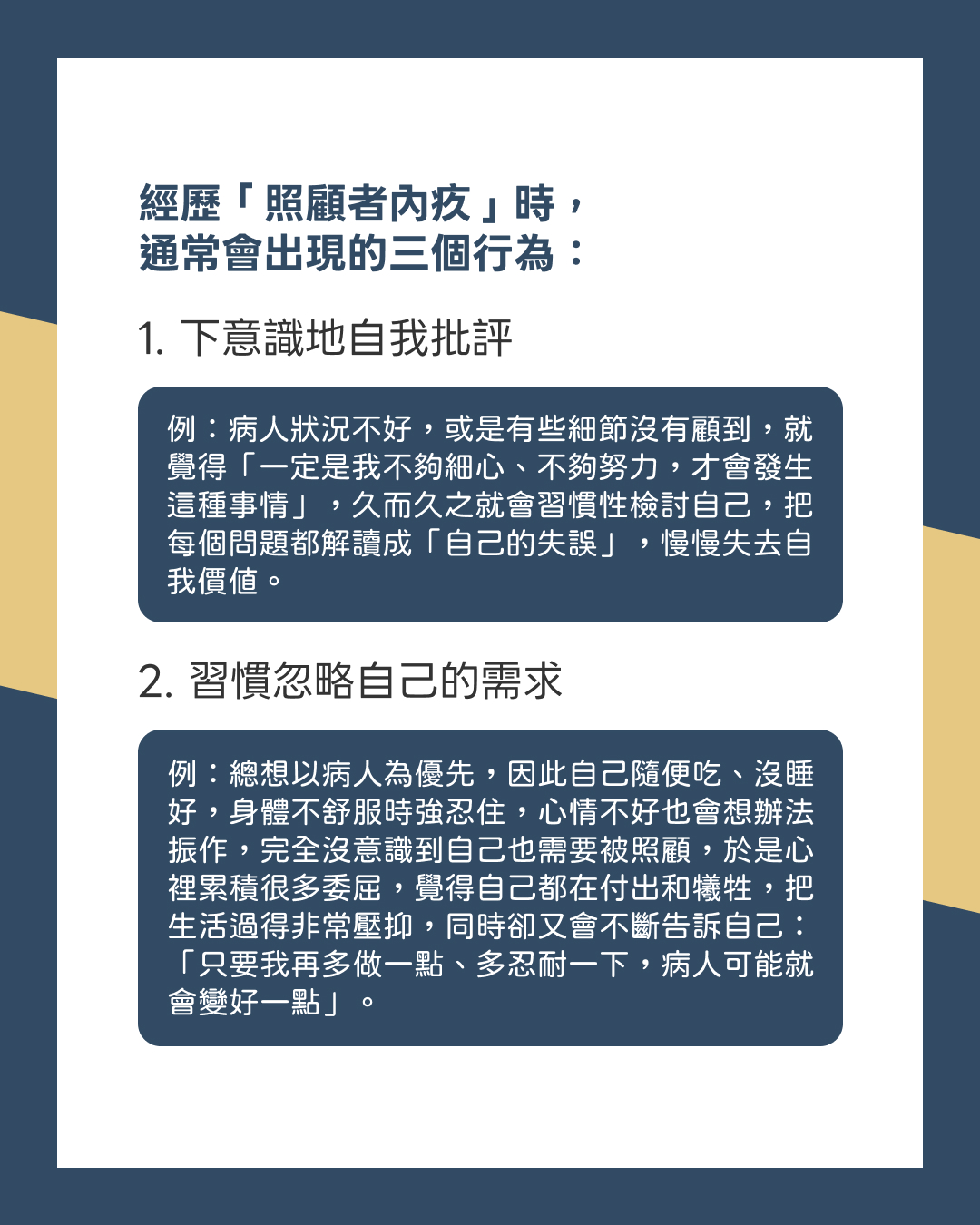 經歷「照顧者內疚」時,通常會出現的三個行為: