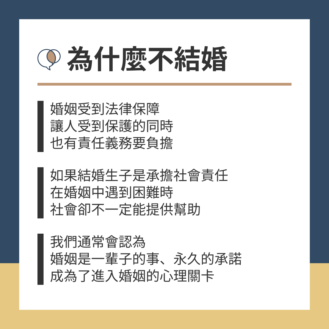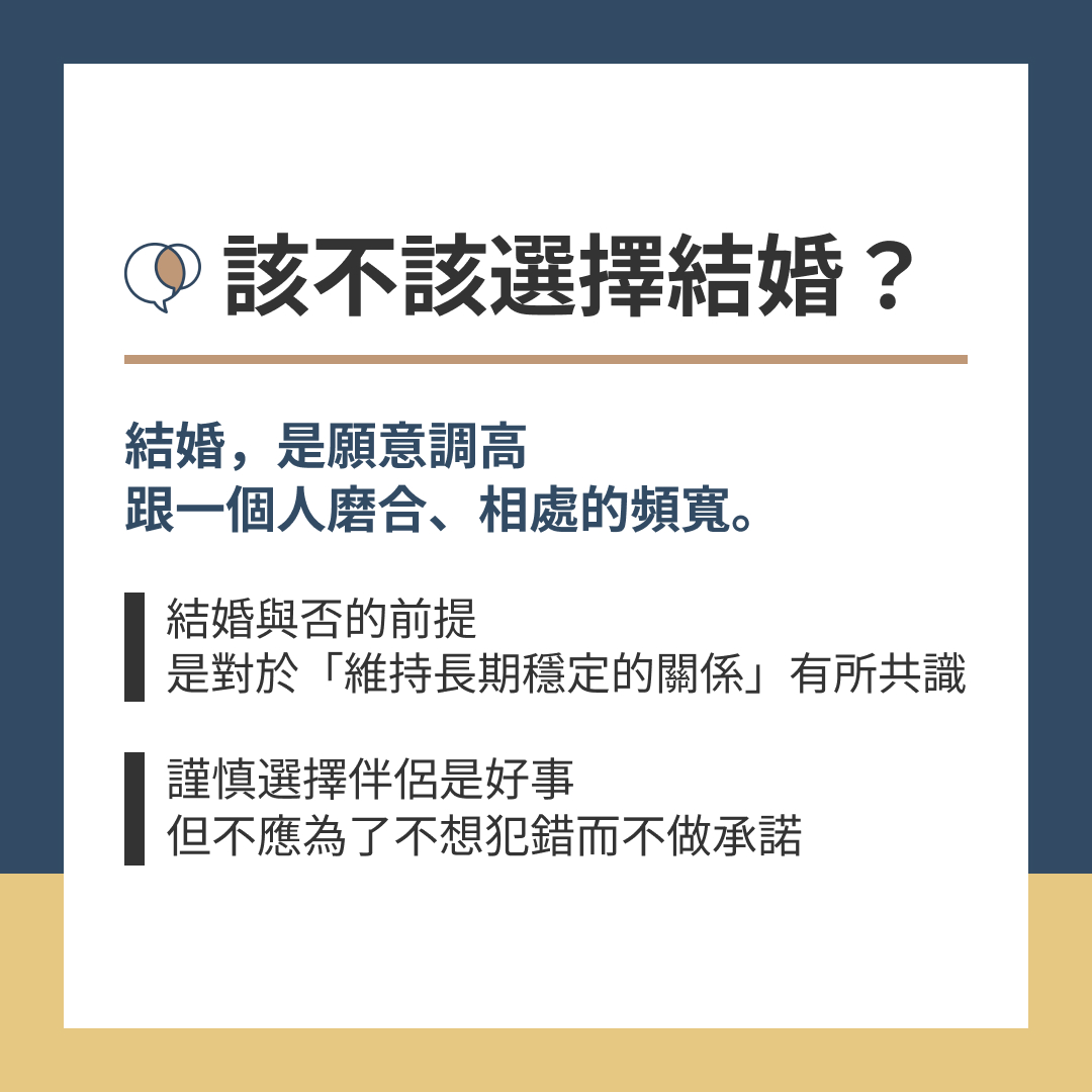 - 結婚與否的前提,是對於「維持長期穩定的關係」有所共識