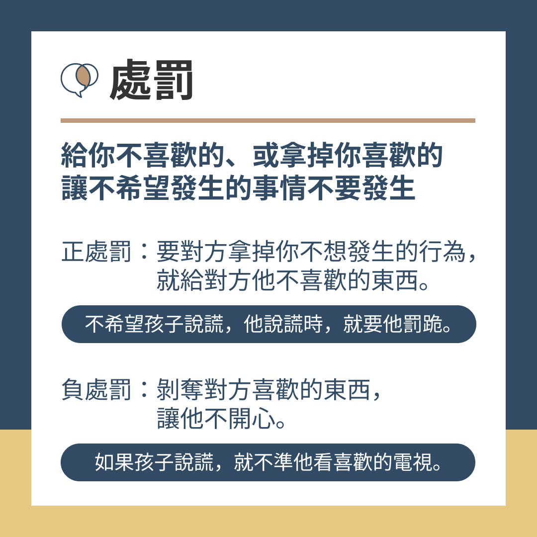 處罰 — 給你不喜歡的東西,或拿掉你喜歡的東西,讓不希望發生的事情不要發生。