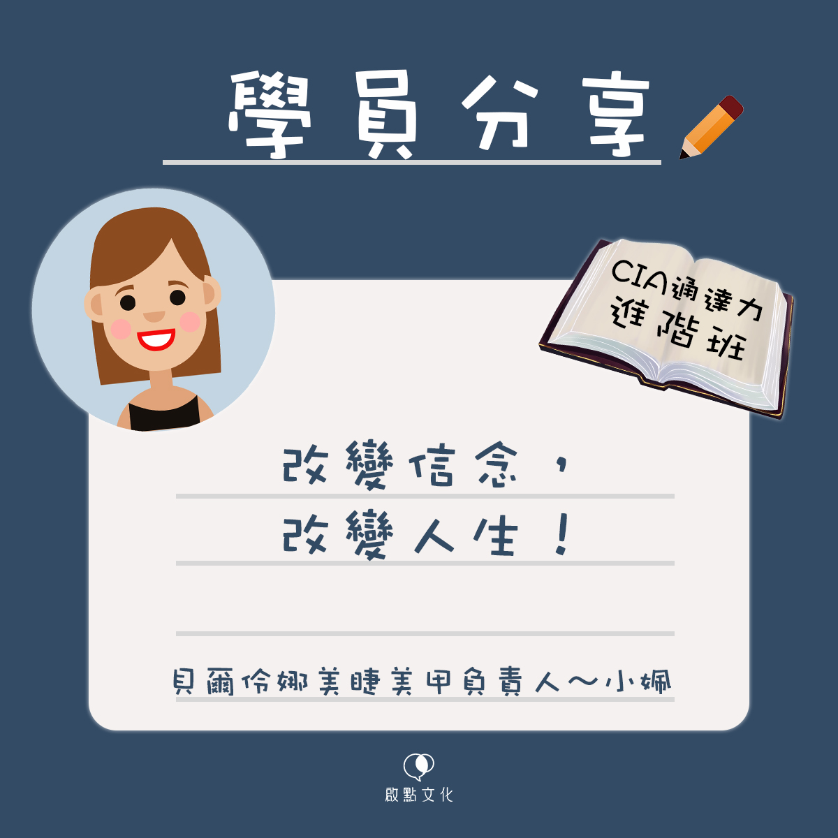 《CIA通達力進階班─學員分享》改變信念,改變人生~貝爾伶娜美睫美甲 負責人 小姵