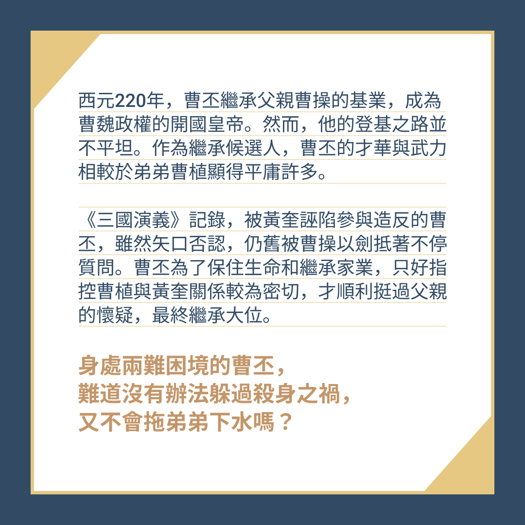 深陷危機的曹丕,為了生存並繼承家業,選擇誣賴弟弟曹植,這樣做真的好嗎?